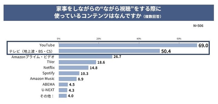 家事をしながらの”ながら視聴”も人気で、YouTubeやテレビが活用されています。