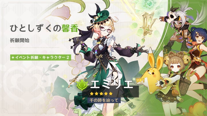 HoYoverseは、マルチプラットフォーム対応オープンワールドRPG『原神』において、7月8日より限定★5キャラクター「マーヴィカ(CV:小松未可子)」、「エミリエ(CV:日笠陽子)」が登場するイベント祈願を開催。