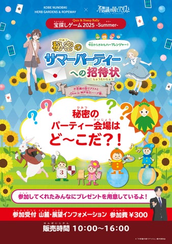 7月12日から8月31日まで、宝探しゲーム2025Summer「不思議の国でアリスと -Dive in 神戸布引ハーブ園-」を実施。