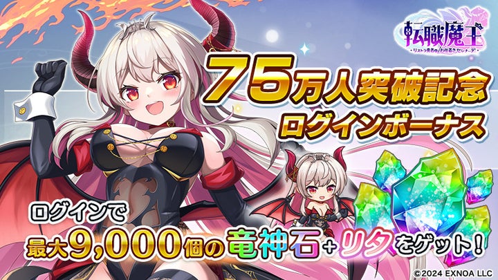 DMM GAMESの『転職魔王~リストラ勇者のお仕置きセレナーデ~』がユーザー数75万人を突破し、記念キャンペーンが開催されます。