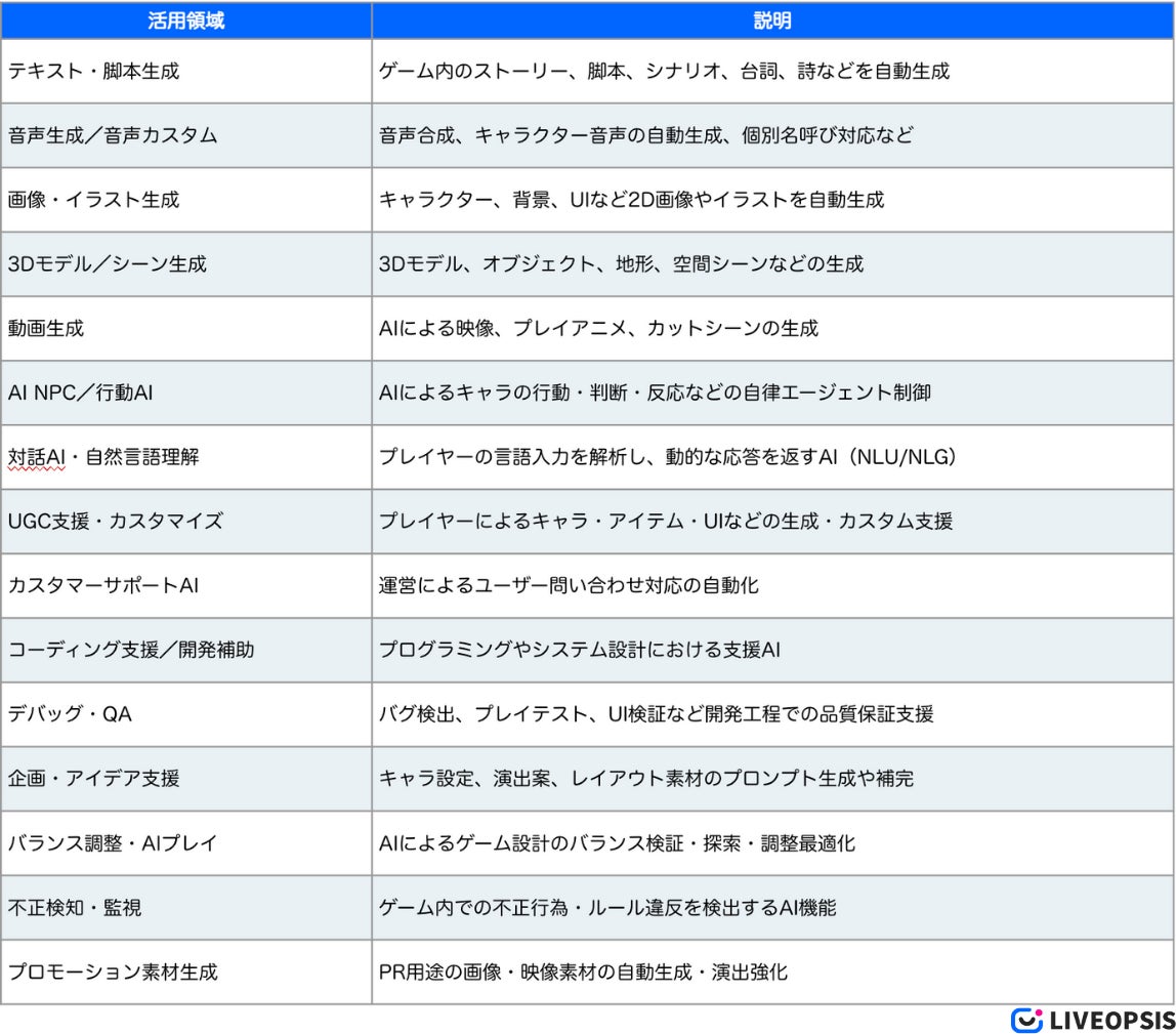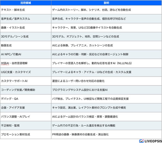 本調査は、日本・中国・米国のゲーム市場を対象に、生成AIのゲーム導入状況を比較分析するもので、Epic GamesやRoblox、Unity、Activision Blizzardといった米国企業の事例を紹介しています。