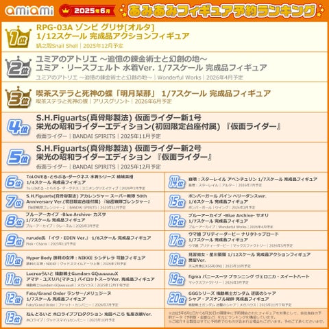 • あみあみ2025年6月フィギュア予約ランキングが発表されました。