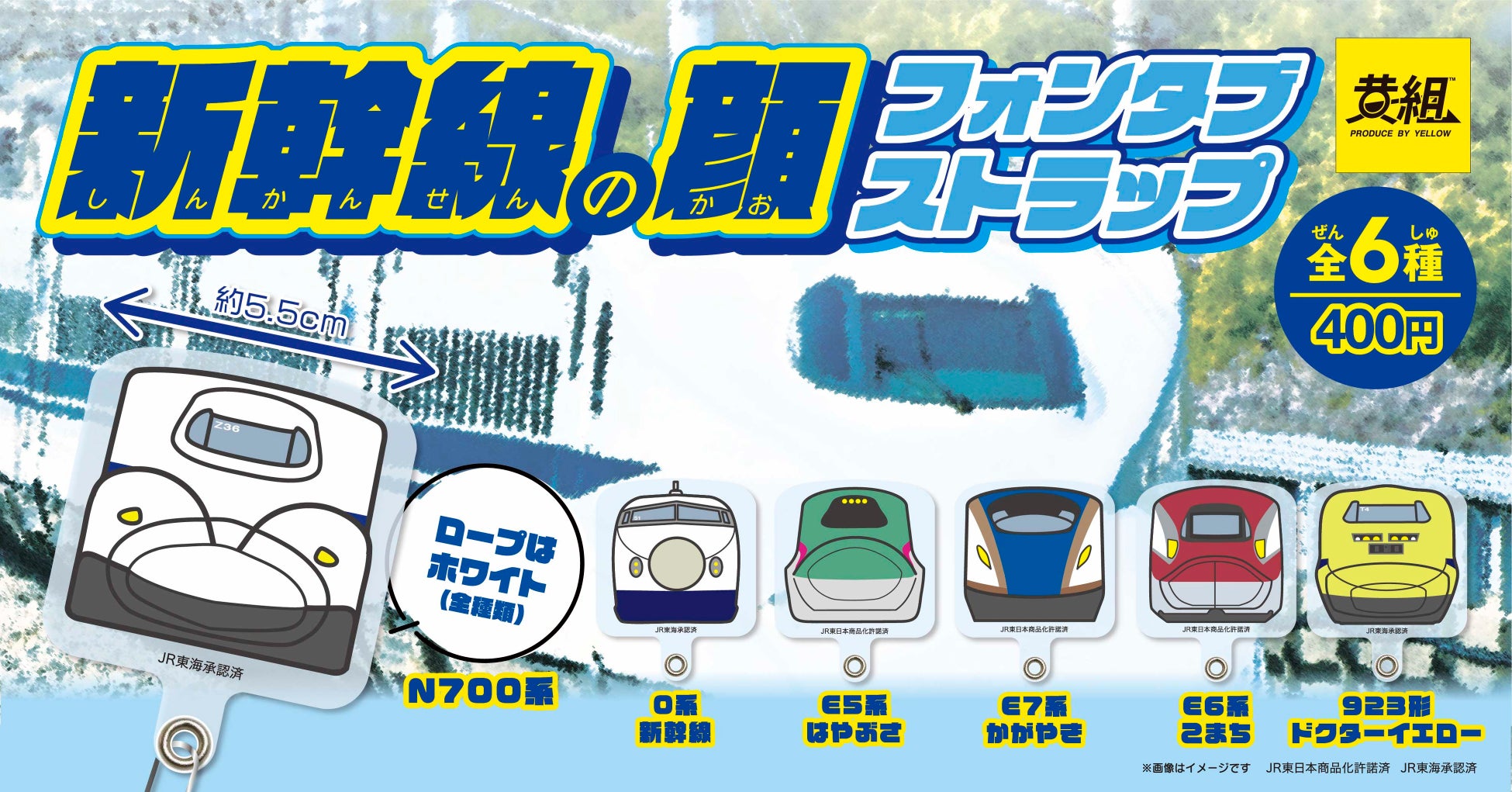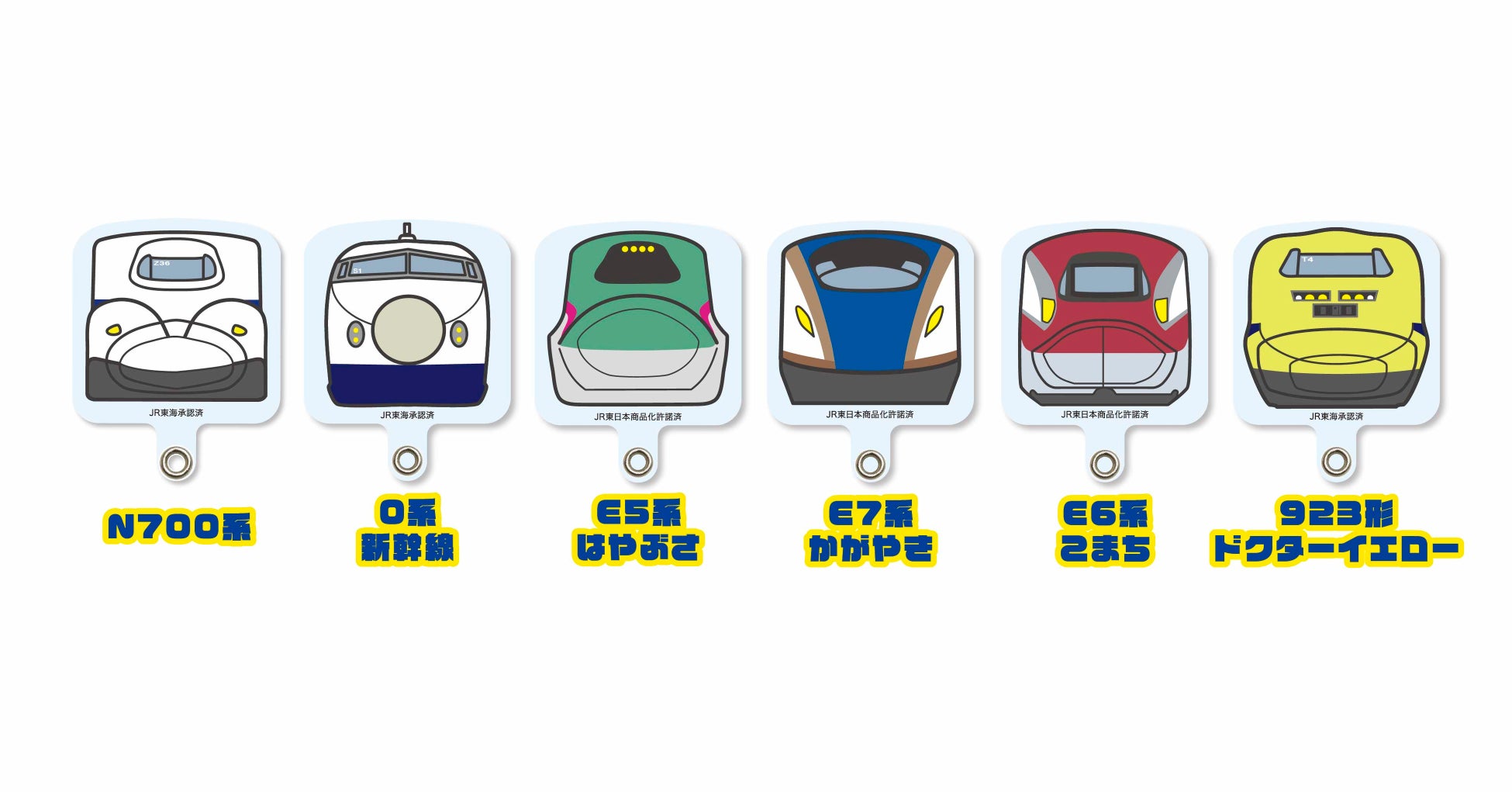 フォンタブストラップはスマホアイテムで、N700系やドクターイエローなどの新幹線の顔がデザインされています。