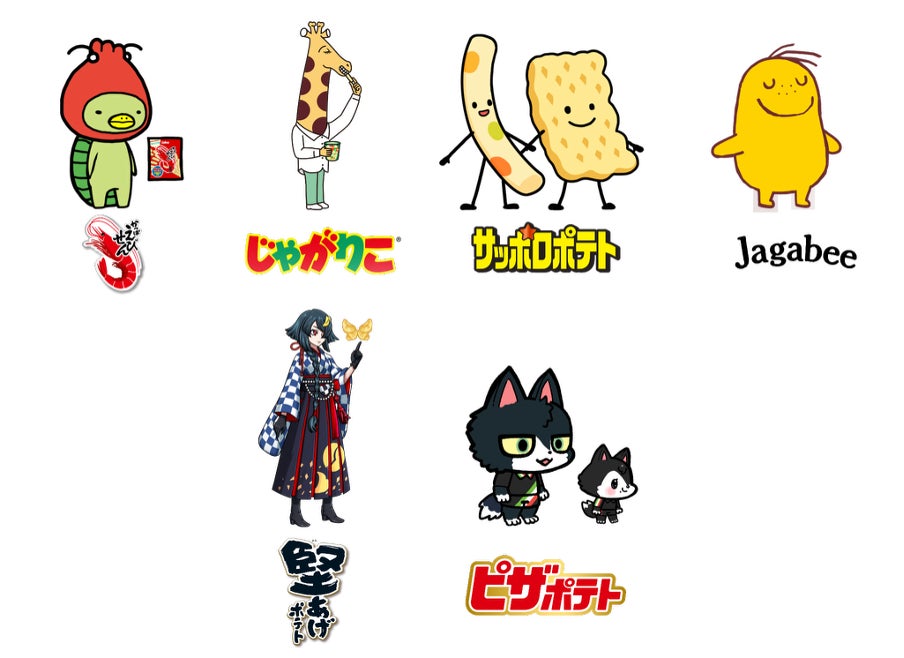 - じゃがりこ、かっぱえびせん、堅あげポテト、Jagabee、サッポロポテト、ピザポテト