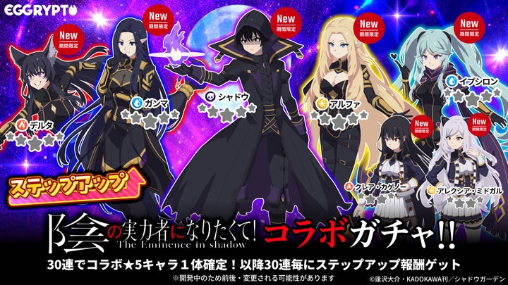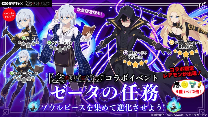 NFTゲーム「EGGRYPTO(エグリプト)」とTVアニメ「陰の実力者になりたくて!」のコラボイベントが7月11日より開催。
