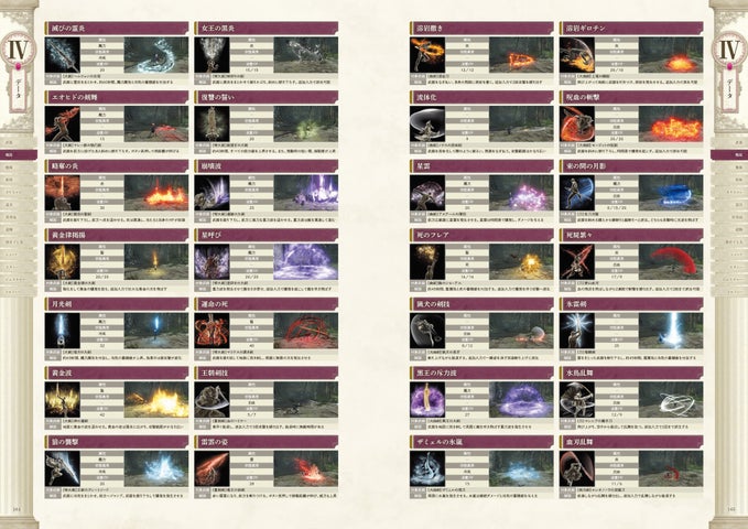 武器、戦技、魔術、祈祷、遺物といった各種データも収録し、ゲームクリアのための攻略情報が満載です。