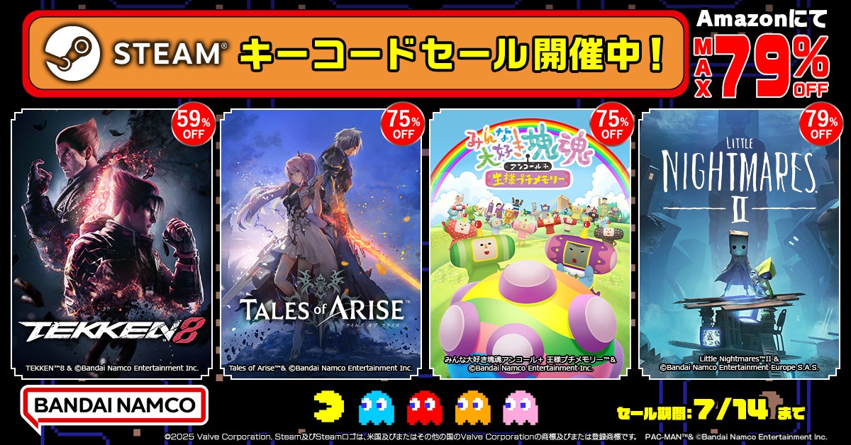 • バンダイナムコエンターテインメントがAmazonでSTEAMキーコードセールを開催。