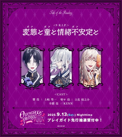 人気作や新作を含めた12作品の朗読劇やバラエティコーナーが用意され、総合司会は鳥海浩輔さんと森久保祥太郎さんが務めます。