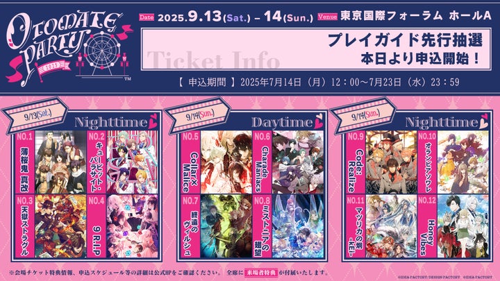 - 「オトメイトパーティー2025」のプレイガイド先行抽選申込が7月14日より開始。