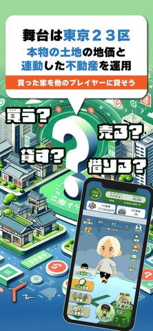 - 東京23区を舞台に、地価や家賃相場と連動したリアルな資産形成を体験可能。