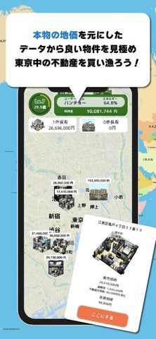 東京23区を舞台に、地価や家賃相場と連動した資産形成を体験できるこのアプリは、完全無料で課金要素もありません。