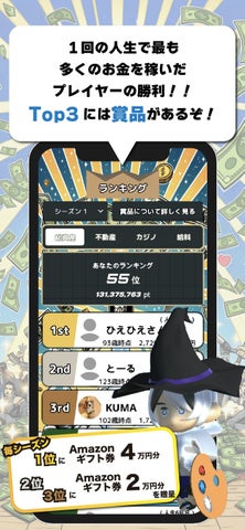 ゲームでは、現実の地価データと連動した経済システムや、戦略的なキャリア形成、リアルな不動産売買などを体験でき、Amazonギフト券がもらえるランキングも開催。