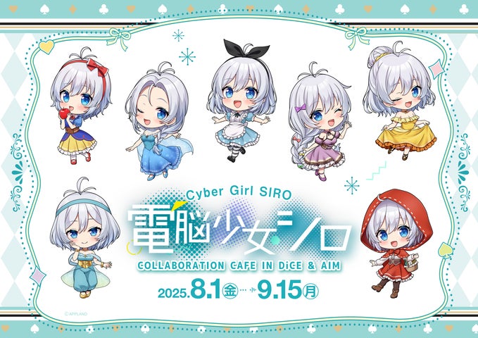 バーチャルYouTuber『電脳少女シロ』と、ネットカフェ&カラオケDiCE、eSPORTS CAFE AIMとのコラボカフェが2025年8月1日から開催決定です。