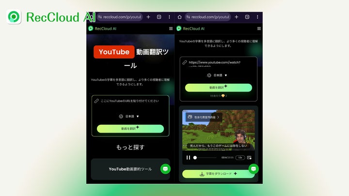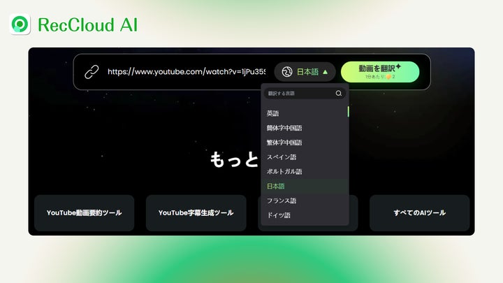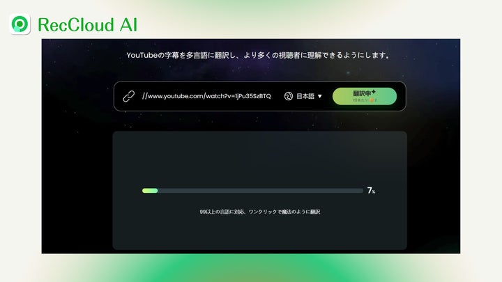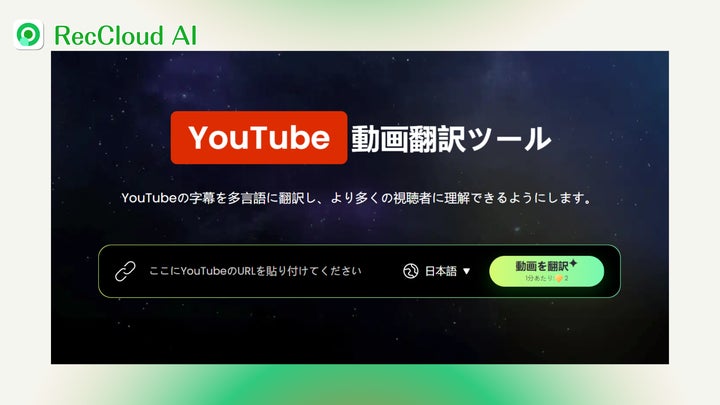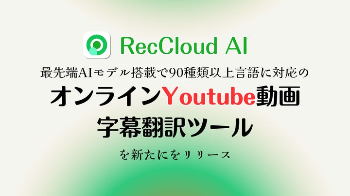 AI動画・音声処理プラットフォームRecCloudが、YouTube動画の字幕を90言語以上に翻訳できるオンラインツール「YouTube動画翻訳ツール」を公開しました。