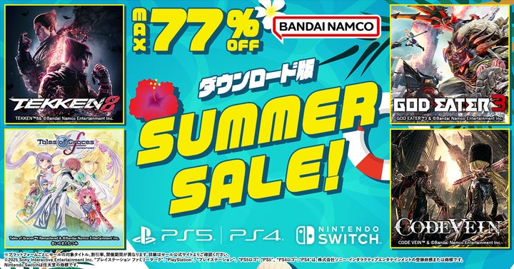 株式会社バンダイナムコエンターテインメントは、ダウンロード版ゲームをお得に楽しめるSummer Saleを開催します。