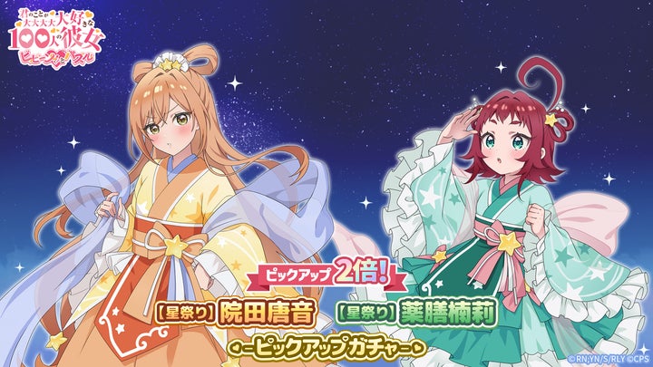 同時に、織姫衣装の院田唐音と薬膳楠莉が登場するピックアップ2倍ガチャも開催。