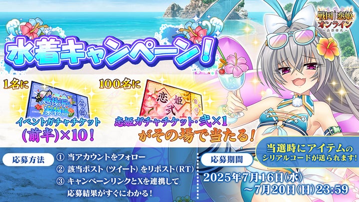 また、水着キャンペーンログインボーナスや、公式Xでのインスタントウィンキャンペーンも実施。