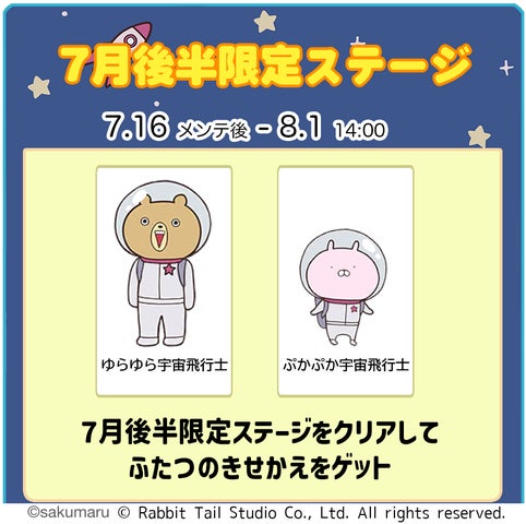 スマートフォン向けクッキングゲーム「うさまるキッチン」にて、7月後半限定ステージが開催。