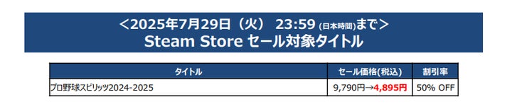 - 『パワフルプロ野球2024-2025』と『プロ野球スピリッツ2024-2025』も半額。