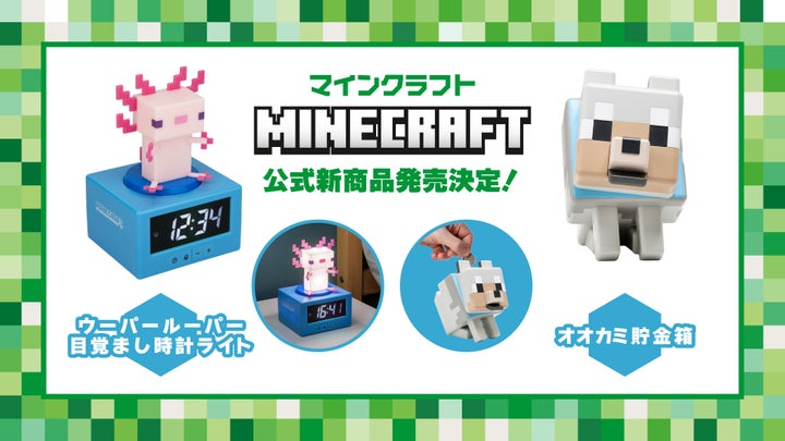 - 『マインクラフト』の人気キャラクター「ウーパールーパー」と「オオカミ」のグッズが登場。