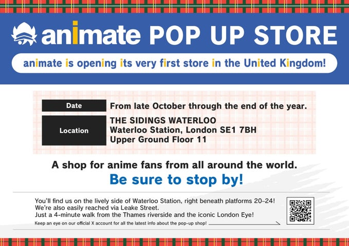 「アニメイトロンドン ポップアップストア」が2025年10月下旬から年末にかけて、ウォータールー駅直結の場所にオープンする。