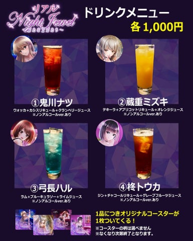 本イベントは、アプリ内のガールズバー“Night Jewel”を再現し、キャストとの会話や飲食を楽しめます。