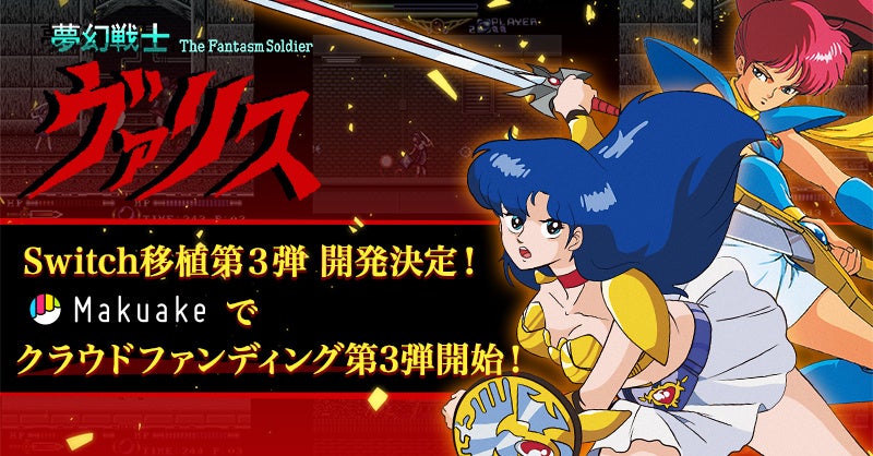 株式会社エディアは、Nintendo Switch用ソフト「夢幻戦士ヴァリスCOLLECTION3(仮称)」の開発とクラウドファンディングを発表しました。