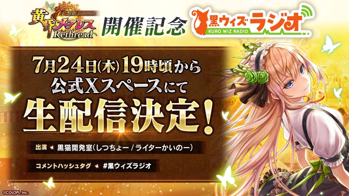 株式会社コロプラは、スマートフォン向けゲーム『クイズRPG 魔法使いと黒猫のウィズ』にて、2025年7月18日(金)よりイベント「黄昏メアレス Rethread 想影pureness -前編-」を開催中です。
