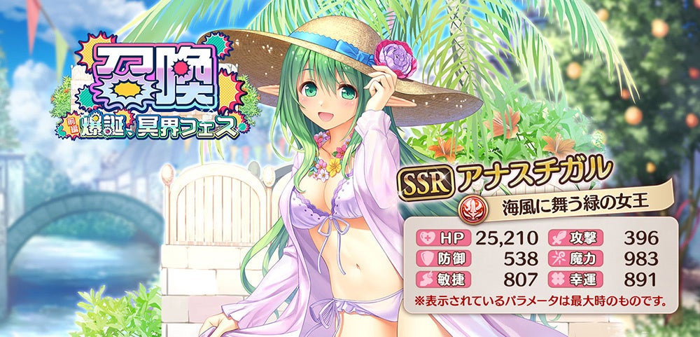 さらに、イベントをクリアするとSSRユー【煌めくさざ波のロンド】やSSRアナスチガル【海風に舞う緑の女王】のどちらかが選べる「フェスSSR確定召喚チケット」ももらえます。