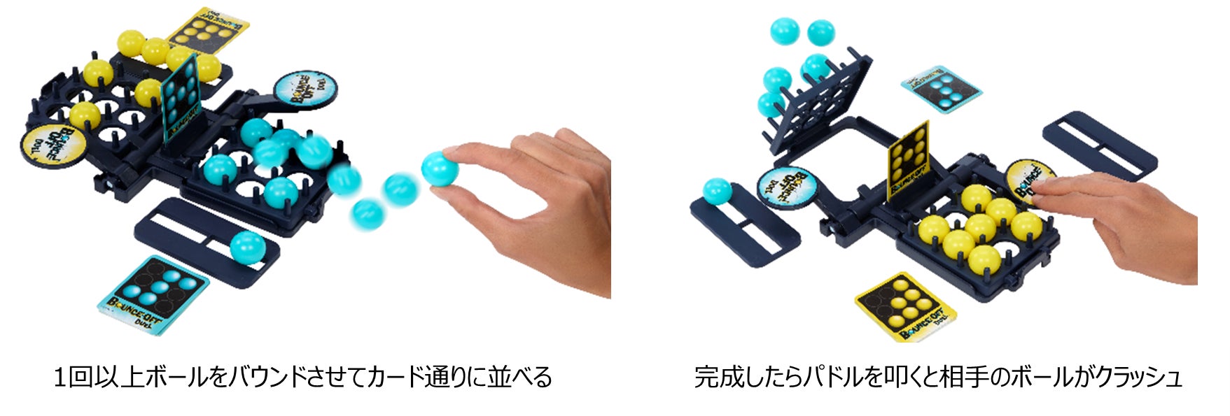一方、「バウンス・オフ・デュエル」は、「バウンス・オフ」に相手のボールをクラッシュできる新たな仕掛けが加わり、いつクラッシュするか分からないドキドキ感を味わえます。