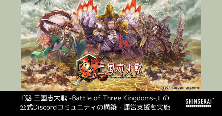 シンセカイテクノロジーズが、double jump.tokyoが開発・運営する新作三国志ゲーム『魁 三国志大戦 -Battle of Three Kingdoms-』の公式Discordコミュニティの構築・運営支援を開始しました。