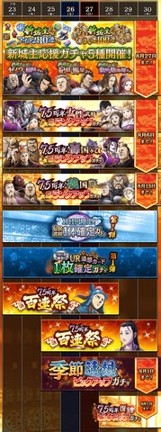 また、7.5周年記念イベントとして、1日1回限定のUR武将確定ガチャや、UR追想カード確定ガチャも開催されています。
