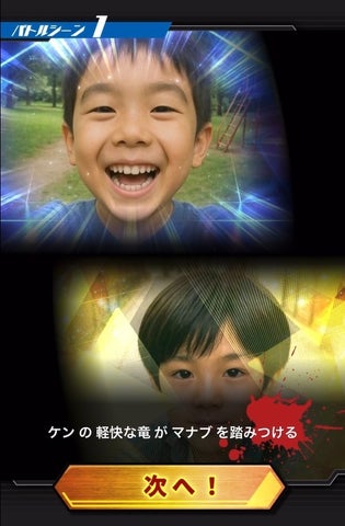 自分やペットなどの写真を撮ってマイ最強王カードを作成し、友達や家族と対戦できます。