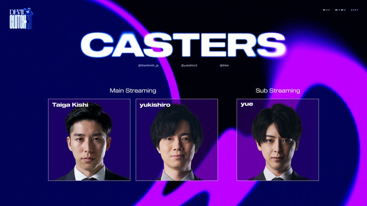 実況解説には公式実況解説陣が登場し、yueのTwitchチャンネルでも裏配信が実施される。