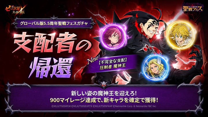 ネットマーブルは、スマートフォン向けRPG『七つの大罪 ~光と闇の交戦~』グローバル版の5.5周年を記念し、聖戦フェス第1弾を開催します。