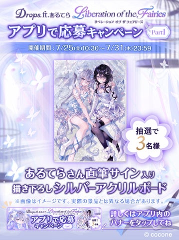 限定ガチャ「Drops.ft.あるてら Liberation of the Fairies」が登場し、アバターファッションアイテムやテーマに合わせたアイテムを入手できます。