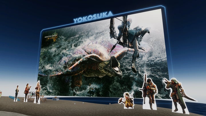 メタバースヨコスカ内では、ゲームに登場するモンスターのアートパネルやハンターの等身大パネルが設置され、ゲームの世界観を体験できる。