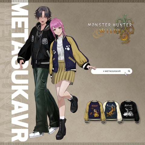 デザインは『モンスターハンターワイルズ』の世界観を反映し、VRchatなどのプラットフォームで使用可能。