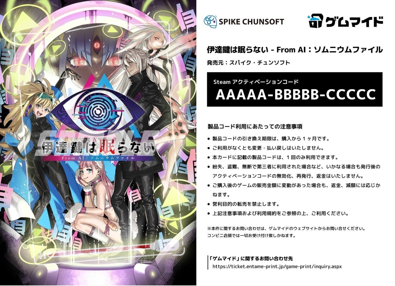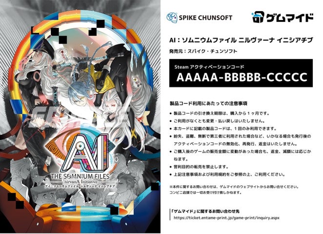 イードが運営するブロマイド付きSteamキーコード販売サービス「ゲムマイド」にて、『AI:ソムニウムファイル』シリーズの3作品を7月25日16:00より販売開始。