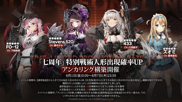 スマホ向け戦略型シミュレーションゲーム『ドールズフロントライン』が7周年を記念し、様々なイベントを開催する。