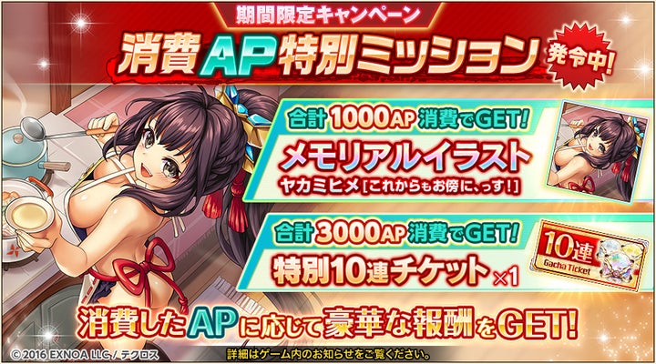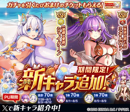 7月28日より、新衣装の神姫が登場するガチャが開催され、出現確率がアップする。