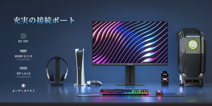 - 27インチ、320Hzリフレッシュレート、1ms応答速度のFast IPSパネル搭載。