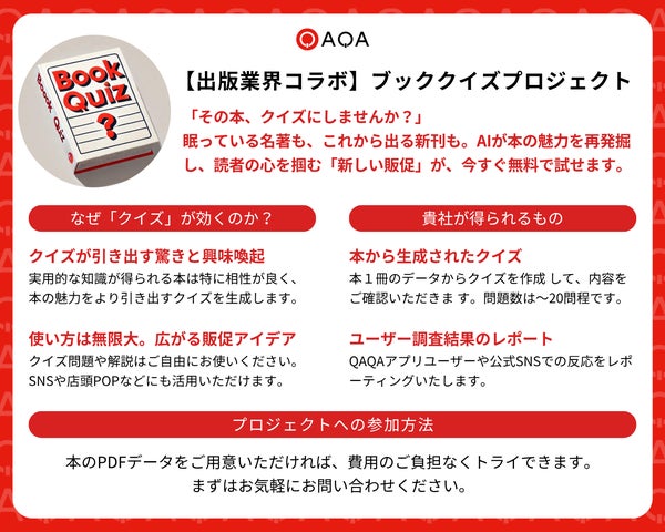 クイズは『QAQA』アプリ内で出題され、書籍の魅力を再認識する機会を提供します。