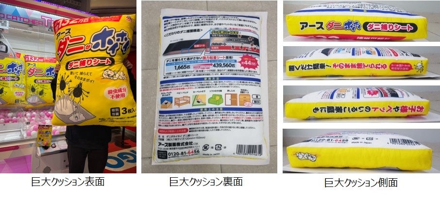 アース製薬が、『ダニがホイホイ』のダニ捕りシートを超巨大クッションにした限定景品を、全国のアミューズメント施設に提供する。