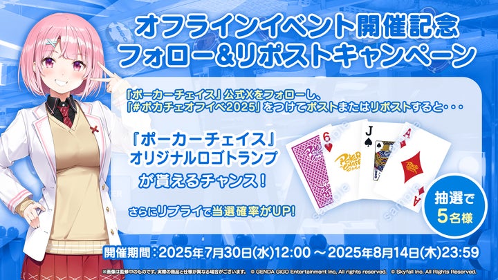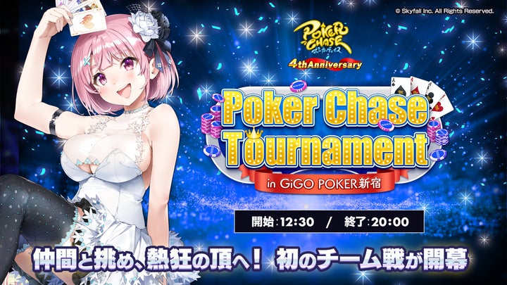 Skyfallが運営するバトロワ式オンラインポーカーゲーム『ポーカーチェイス』は、4周年を記念して、GiGO POKER新宿で2025年8月31日にオフラインイベントを開催する。