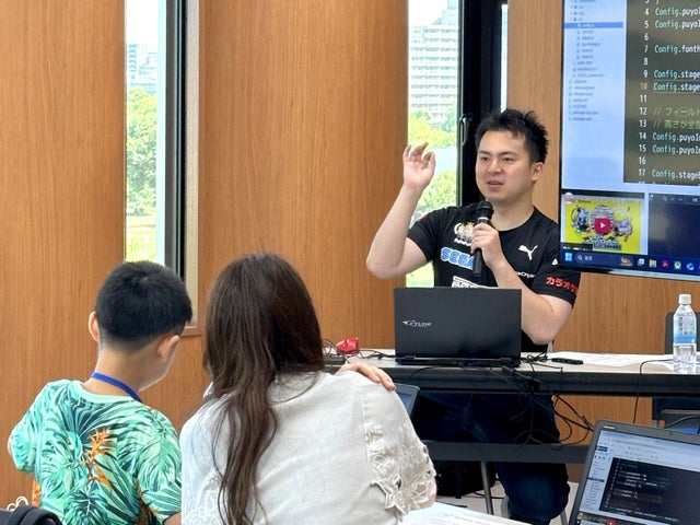 プログラミング講座では「ぷよぷよ」のソースコードを学び、お好み焼教室では「ぷよぷよ」のキャラクターを描くオコアートに挑戦。