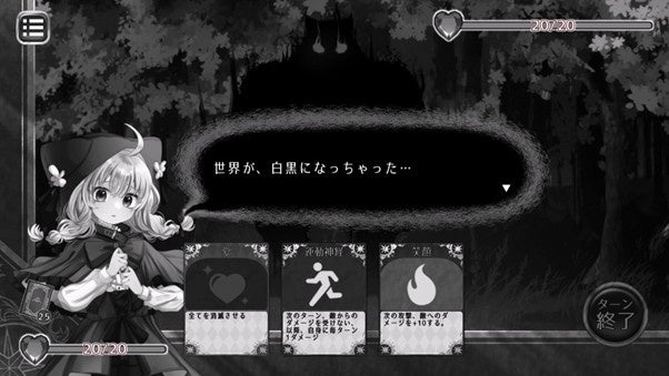 プレイヤーは、少女の「大切なもの」を代償にしながら、35枚のカードで構成されたデッキを駆使して敵と戦い、森からの脱出を目指します。
