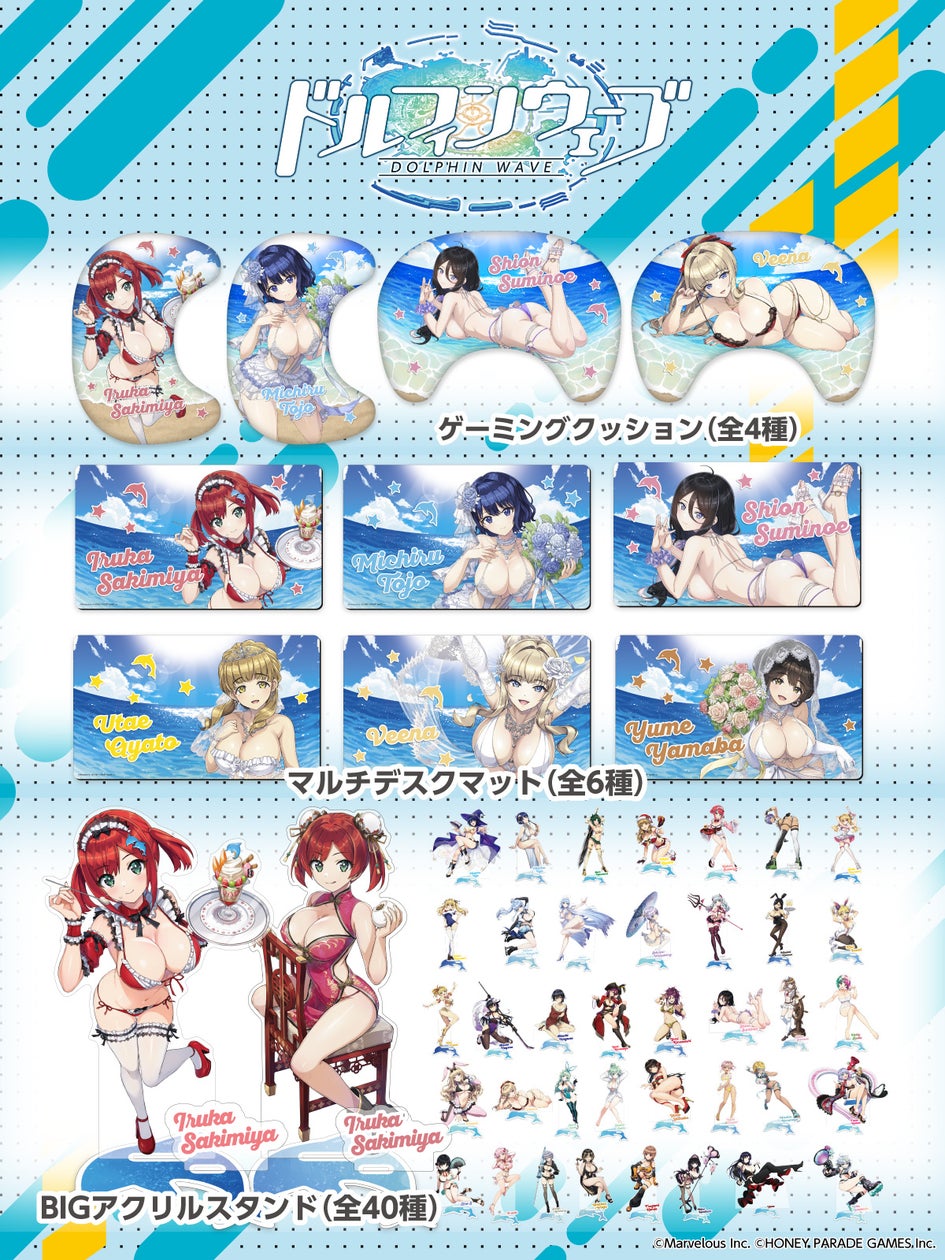 - 『ドルフィンウェーブ』の「ゲーミングクッション」「マルチデスクマット」「BIGアクリルスタンド」がコミックマーケット106に登場。