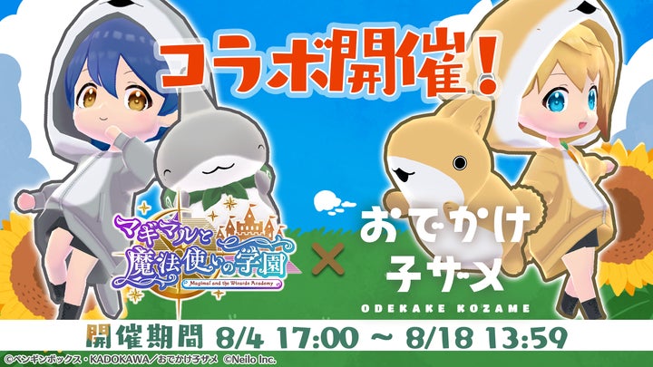 SNSで大人気の『おでかけ子ザメ』が、スマートフォン向けアプリ『マギマルと魔法使いの学園』にコラボ登場。