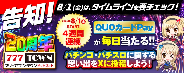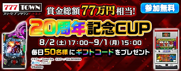 - 「777TOWN.net」が20周年を記念し、様々なイベントとキャンペーンを実施。